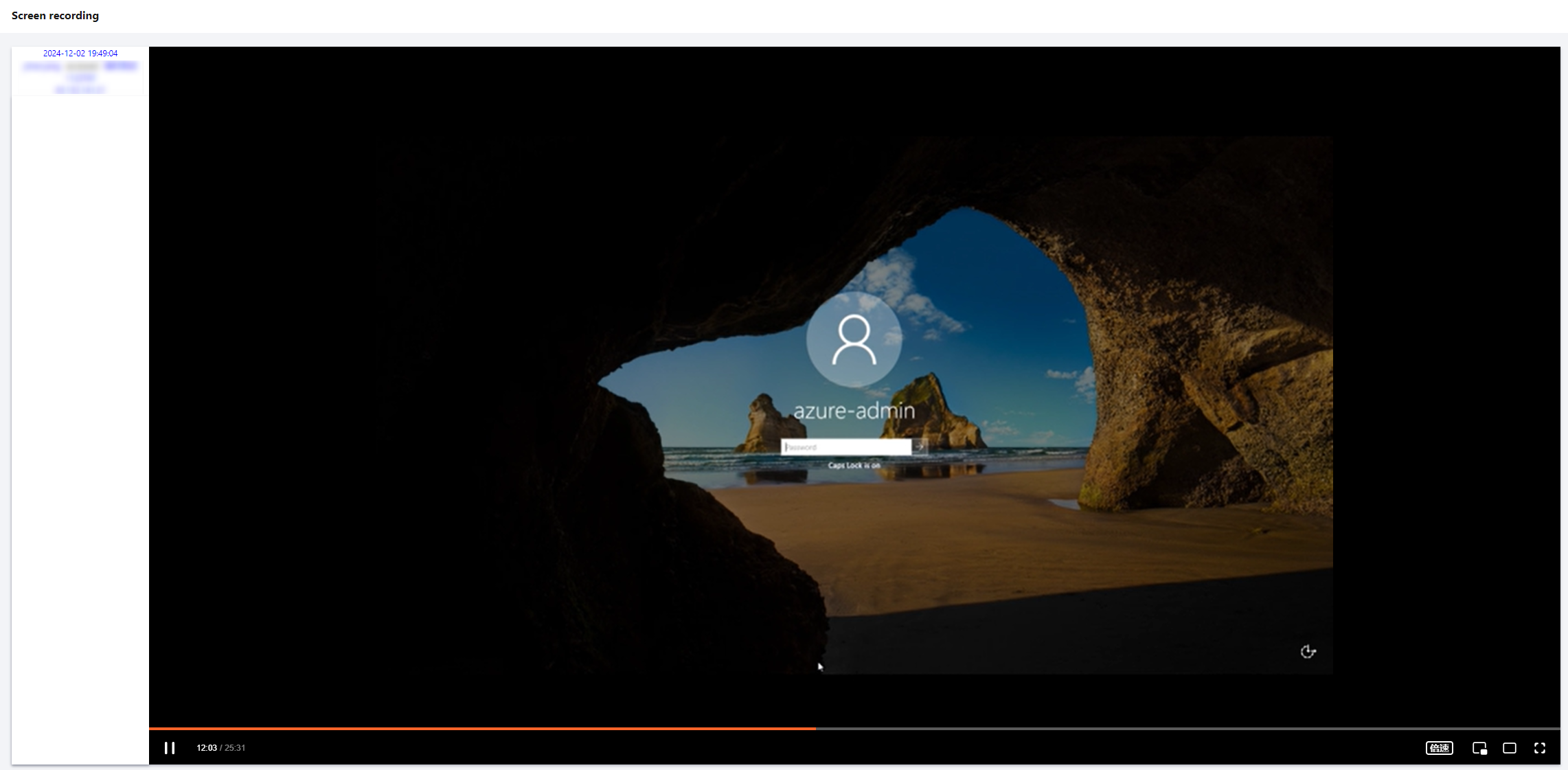 6. On the Graphical Session page, click Replay on the right side of the corresponding session to replay the historical session in a new page, restoring the user's actual operations. 7. On the Historical Session Replay page, you can view the user's operations on the Windows host.