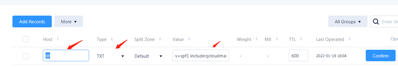 Masukkan v=DMARC1; p=none;rua=mailto:xxx@163.com;ruf=mailto:xxx@163.com; sebagai nilai catatan.