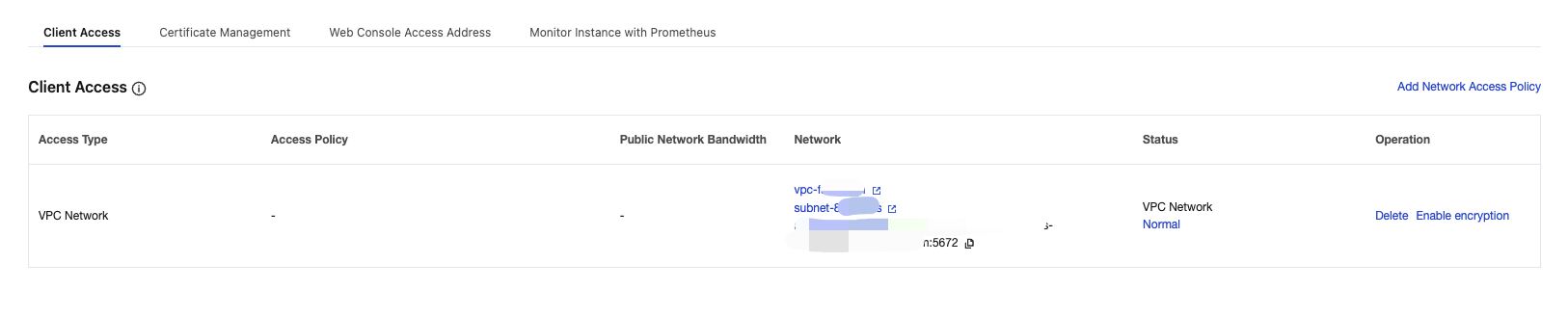 3. In the pop-up window, click OK. After encryption is enabled, an encrypted access point with port 5671 will be displayed in the Network column.