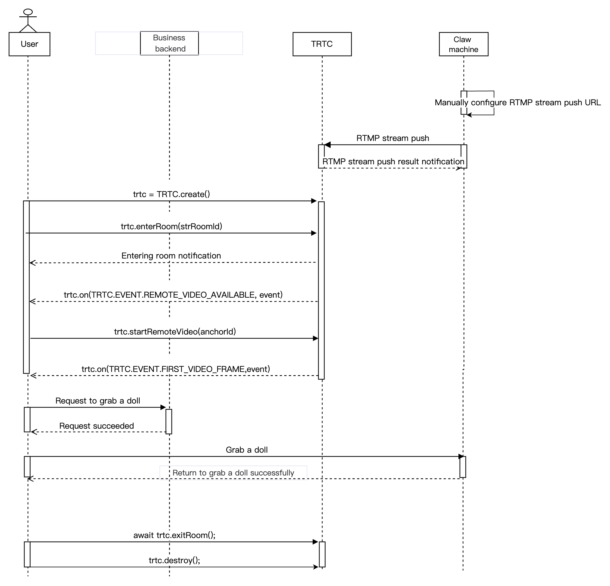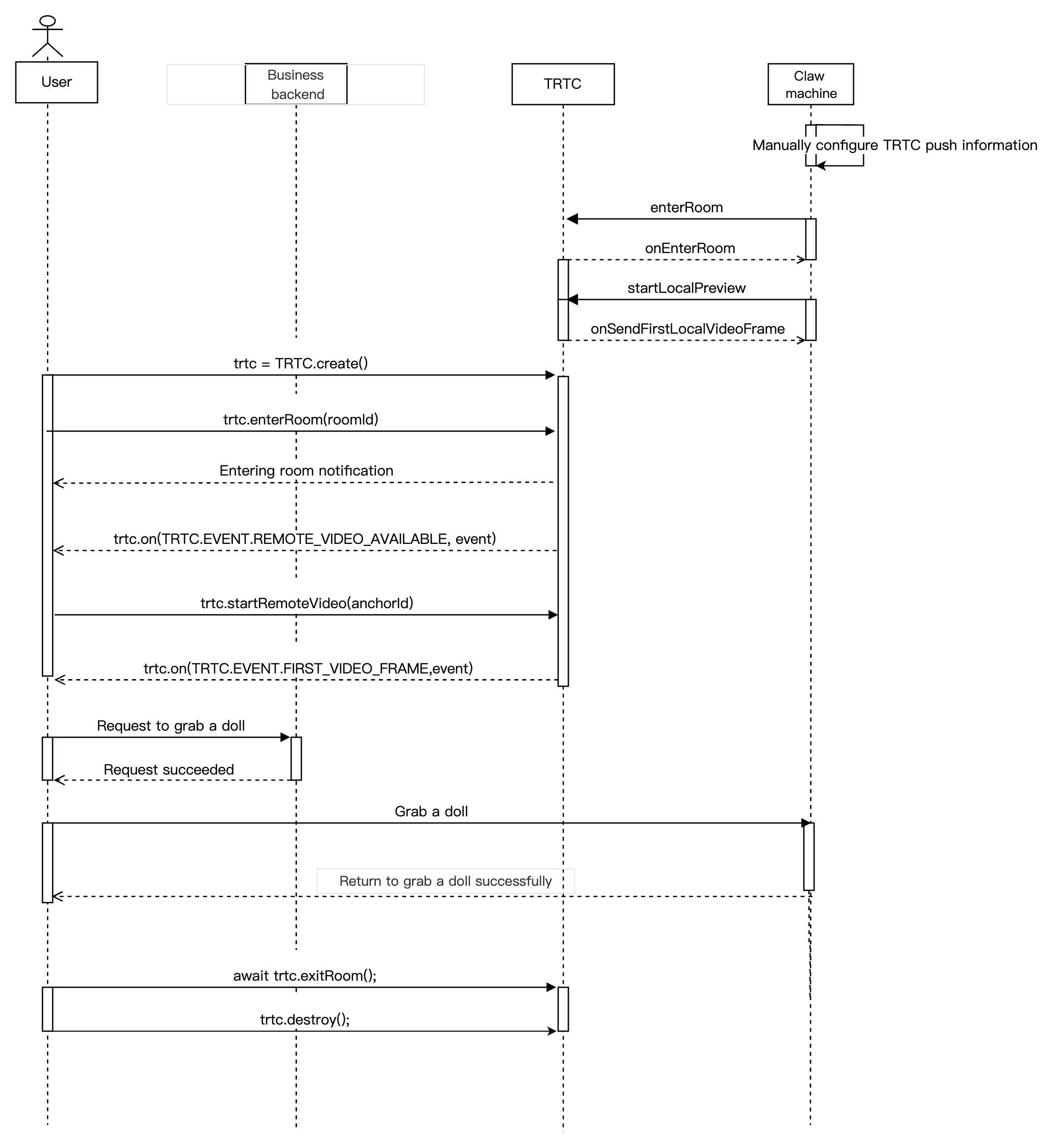 This section summarizes some common business processes of online claw machines to help you better understand the implementation of the entire scenario.