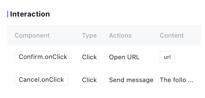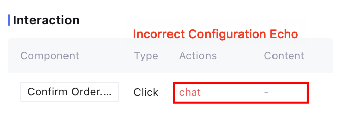 For interactive operations that cannot be configured on the platform, the operation bar content will show as red text. For details on the specific interactive configuration method, see Widget Action instructions. Configuring Widget Issuance Method