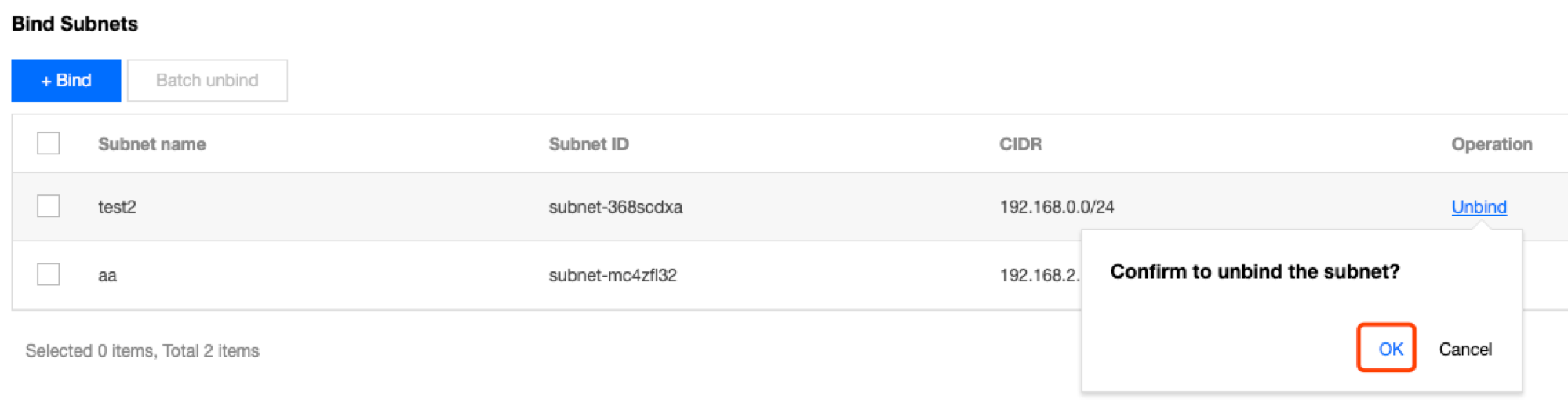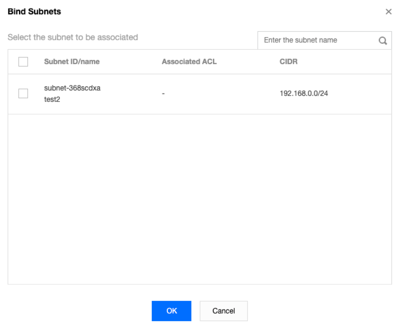 5. Pilih subnet yang akan dihubungkan dari jendela pop-up dan klik OK (Oke).