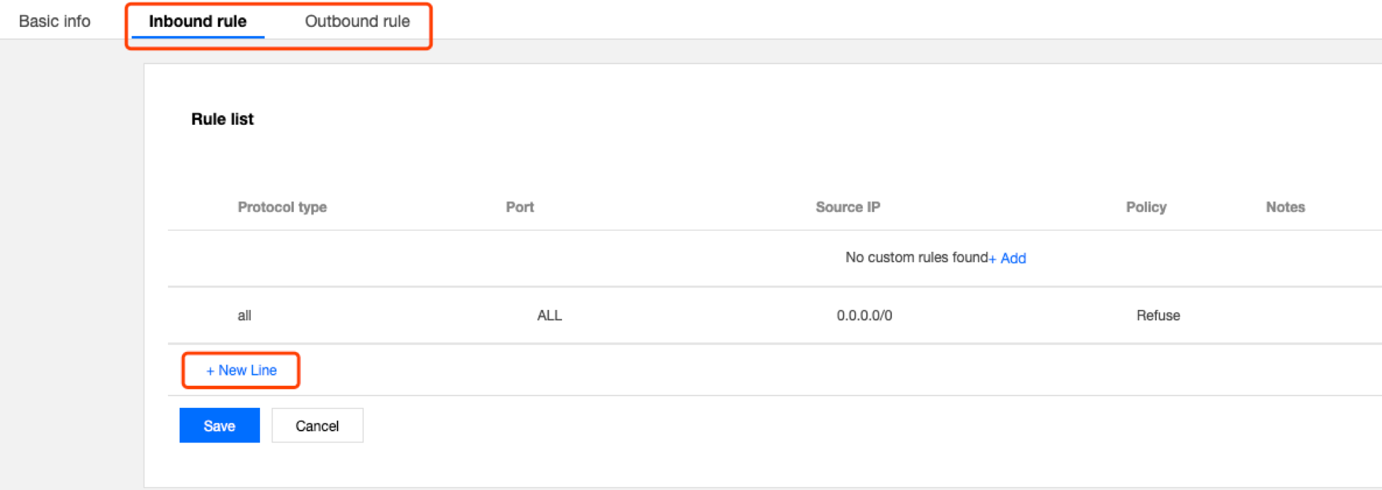 4. Untuk menambahkan aturan keluar/masuk, klik Outbound Rules (Aturan Keluar) atau Inbound Rules (Aturan Masuk) -> Edit -> New Line (Baris Baru), pilih jenis protokol, masukkan port dan alamat IP sumber, dan pilih kebijakan.