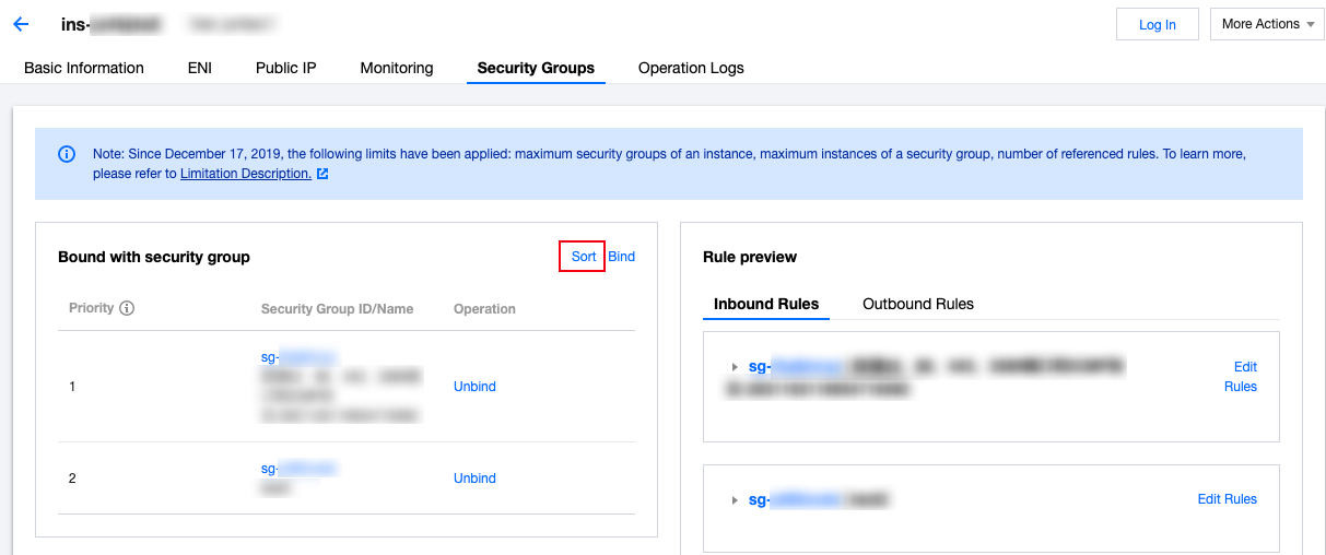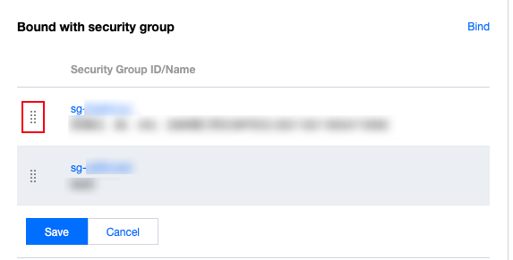 Anda dapat mengikat satu atau beberapa grup keamanan ke CVM. Jika Anda telah mengikat beberapa grup keamanan, grup keamanan ini dijalankan berdasarkan prioritasnya. Anda dapat menyesuaikan prioritas sebagai berikut.