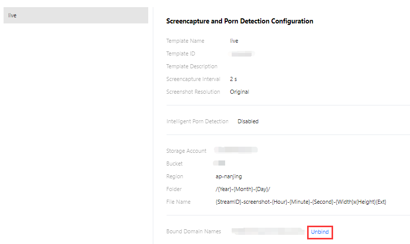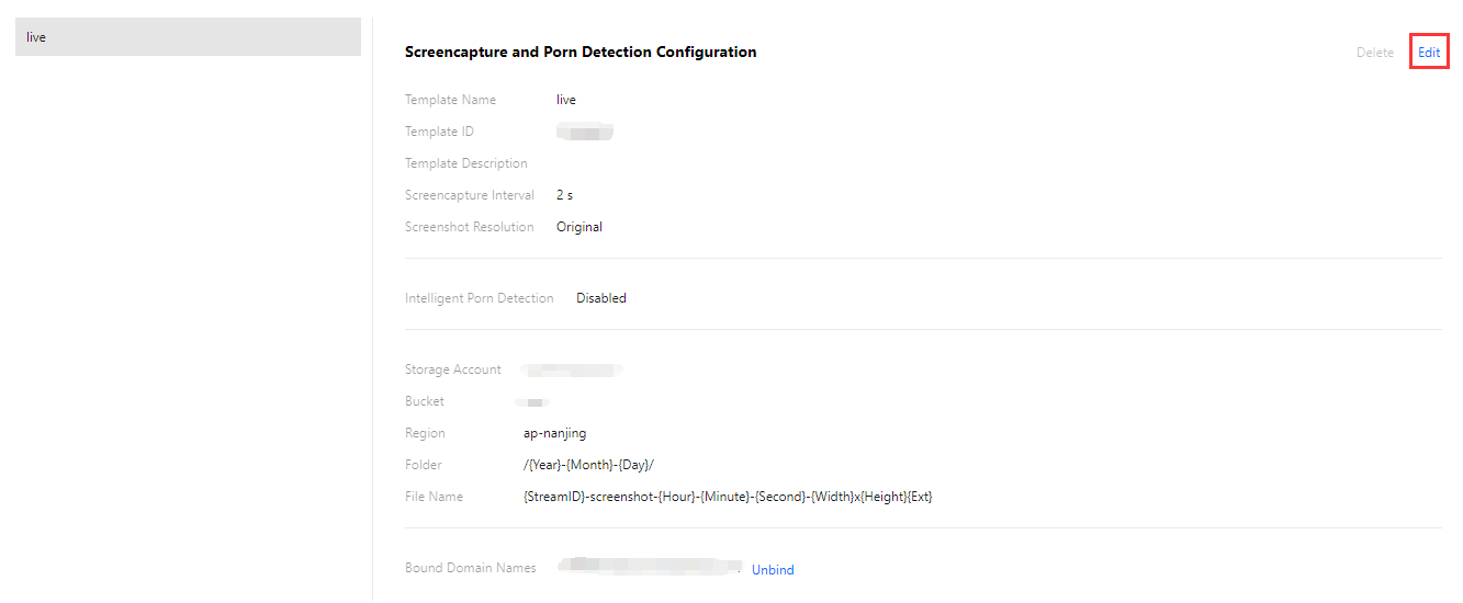 Intelligent Porn Detection (Deteksi Pornografi Cerdas) | Opsi untuk mengaktifkan deteksi pornografi cerdas atau tidak. Jika deteksi pornografi cerdas diaktifkan, Anda perlu mengonfigurasikan templat panggilan balik terlebih dahulu agar dapat menerima hasil deteksi pornografi. |
