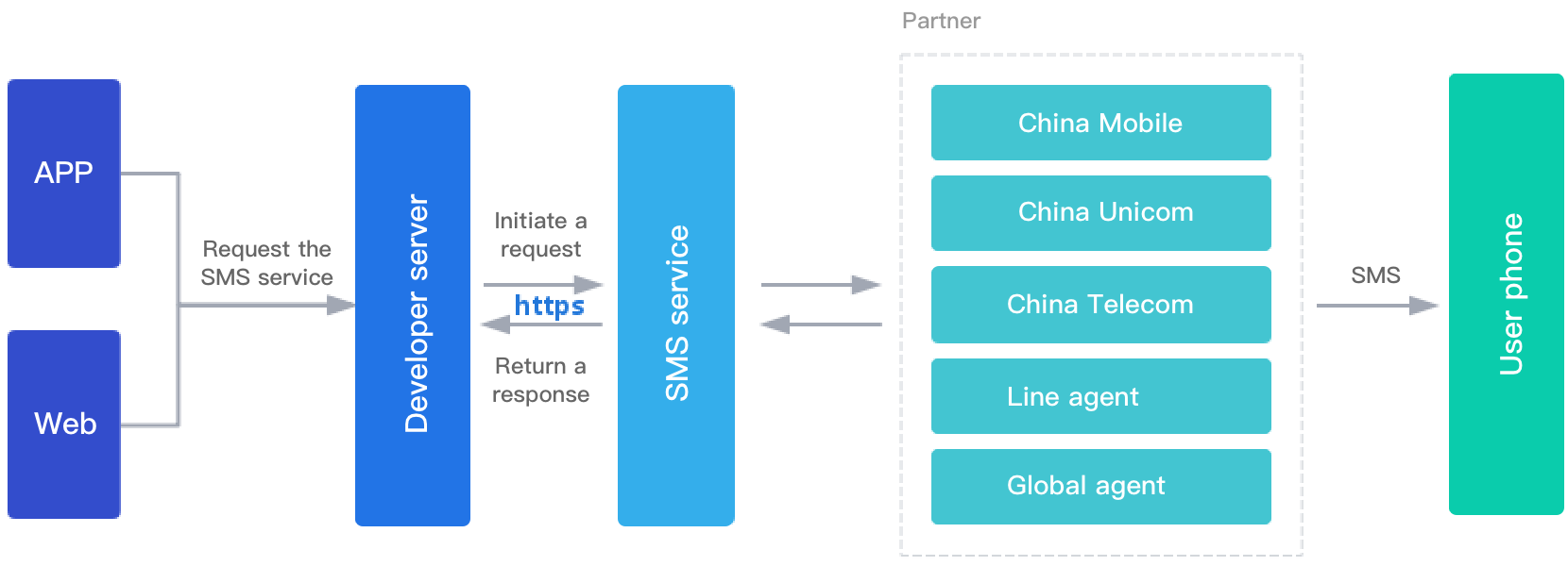 Kode verifikasi, pemberitahuan, dan SMS pemasaran Tanda tangan dan isi SMS kustom SMS dengan Penerima Tunggal dan massal SMS Upstream Akuisisi status pengiriman SMS | Tunnel HTTPS yang aman tersedia Pemfilteran IP permintaan berbasis daftar izin didukung Pemfilteran konten SMS berbasis kata sensitif didukung Kontrol batas frekuensi pengiriman SMS didukung Deployment Multi-Wilayah dan akses terdekat didukung |