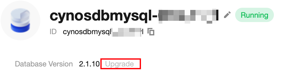 クラスタ管理ページで、データベースバージョンの後にあるアップグレードをクリックします。