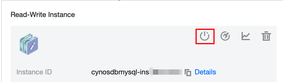 クラスタに読み取り専用インスタンスが存在する場合、読み書きインスタンスを削除するには、まずクラスタ配下の読み取り専用インスタンスをすべて削除する必要があります。クラスタ詳細ページで対象インスタンスを見つけ、破棄アイコンをクリックします。