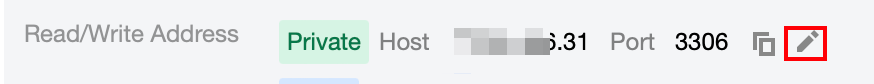 クラスタ詳細ページで、対象インスタンスを見つけ、リードライトアドレスまたはリードオンリーアドレスの横にある編集アイコンをクリックします。