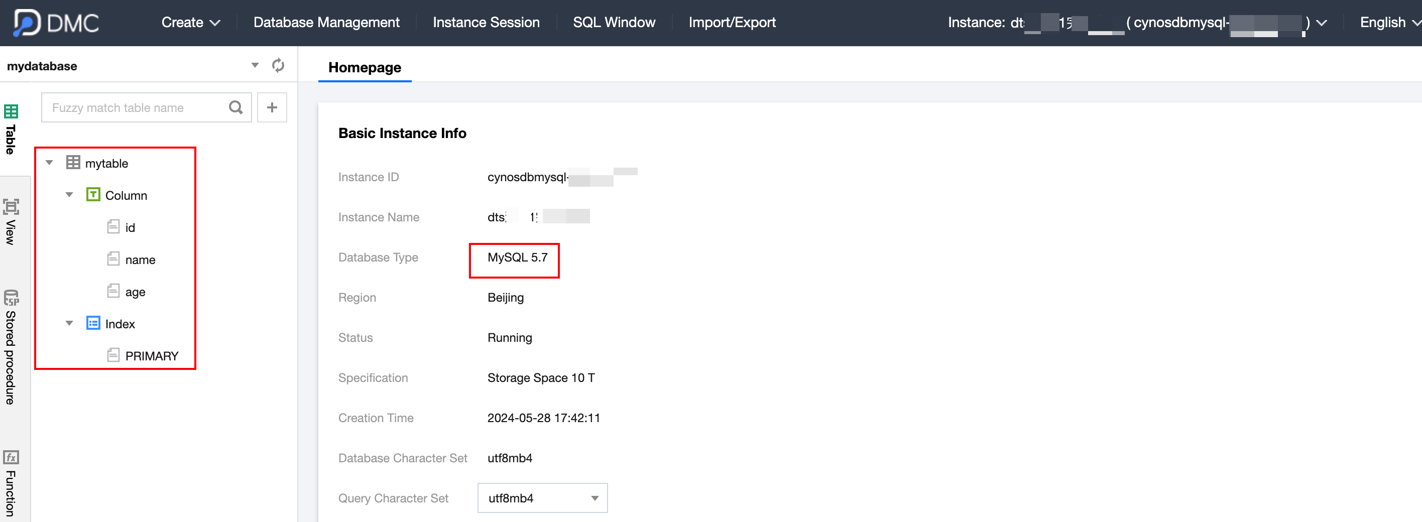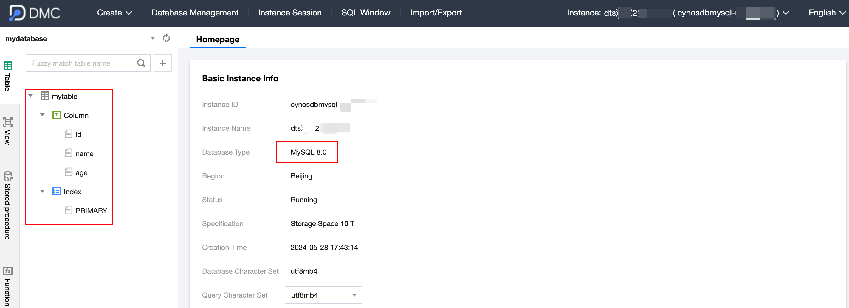 7. DMC管理ページでソースクラスタとターゲットクラスタのデータベースやテーブルなどのデータを比較し、データがすべて同期完了していることを確認します。