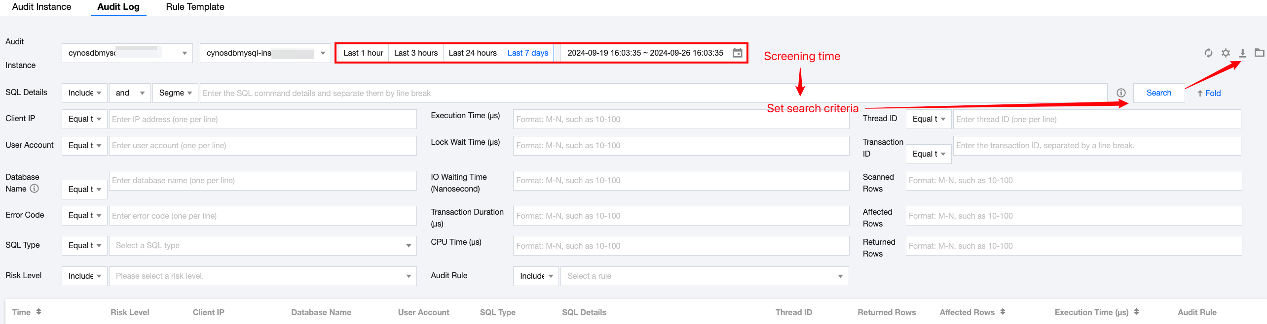データベース監査機能を有効にした後、監査ログには削除ボタンが提供されません。これにより、ユーザーによる誤削除や監査ログの変更を防止できます。データベース監査機能を無効にした場合のみ、監査記録が消去されます。