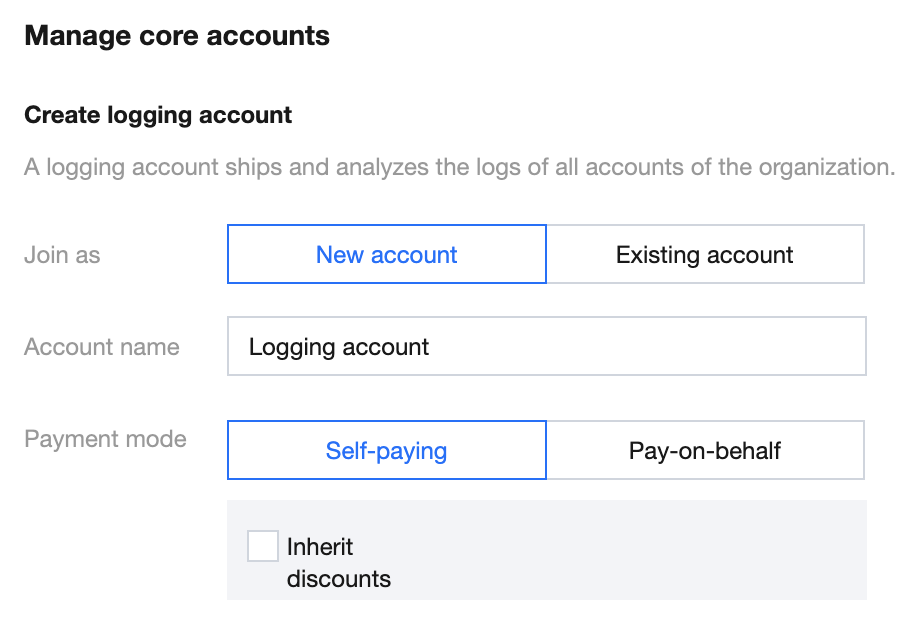 コアアカウントは、すべてのログ配信とクラウドセキュリティ作業の管理に主に使用されます。新規作成または既存のアカウントを選択してコアアカウントを管理できます。このドキュメントでは、Landing Zoneでコアアカウントを設定する方法を紹介します。