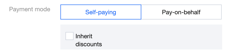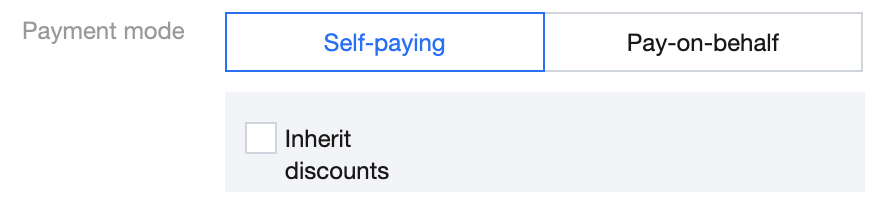 自己負担をクリックすると、自己負担の支払い方法を選択できます。割引継承にチェックを入れると、管理アカウントの契約価格割引を継承できます。