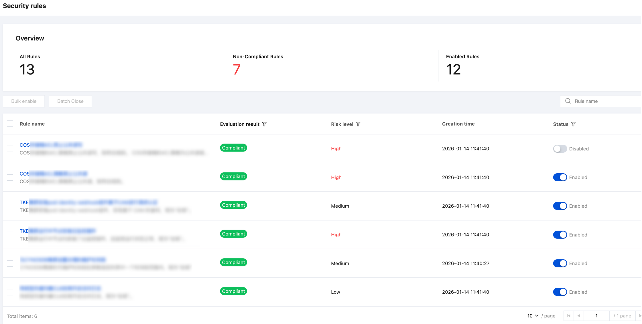低リスク:必須ではないルールであり、実際の状況に応じて有効化を選択できます。デフォルトでは有効化されており、自身で閉鎖することができます。