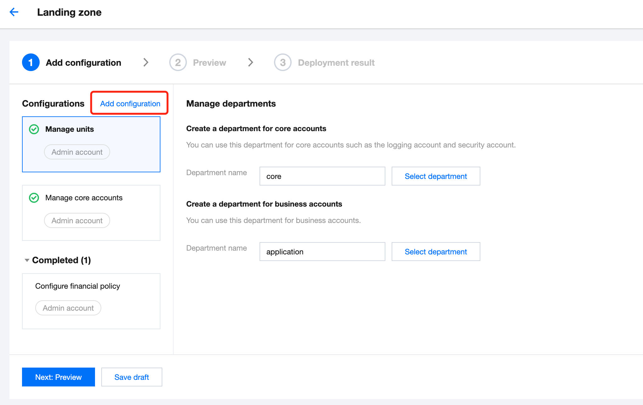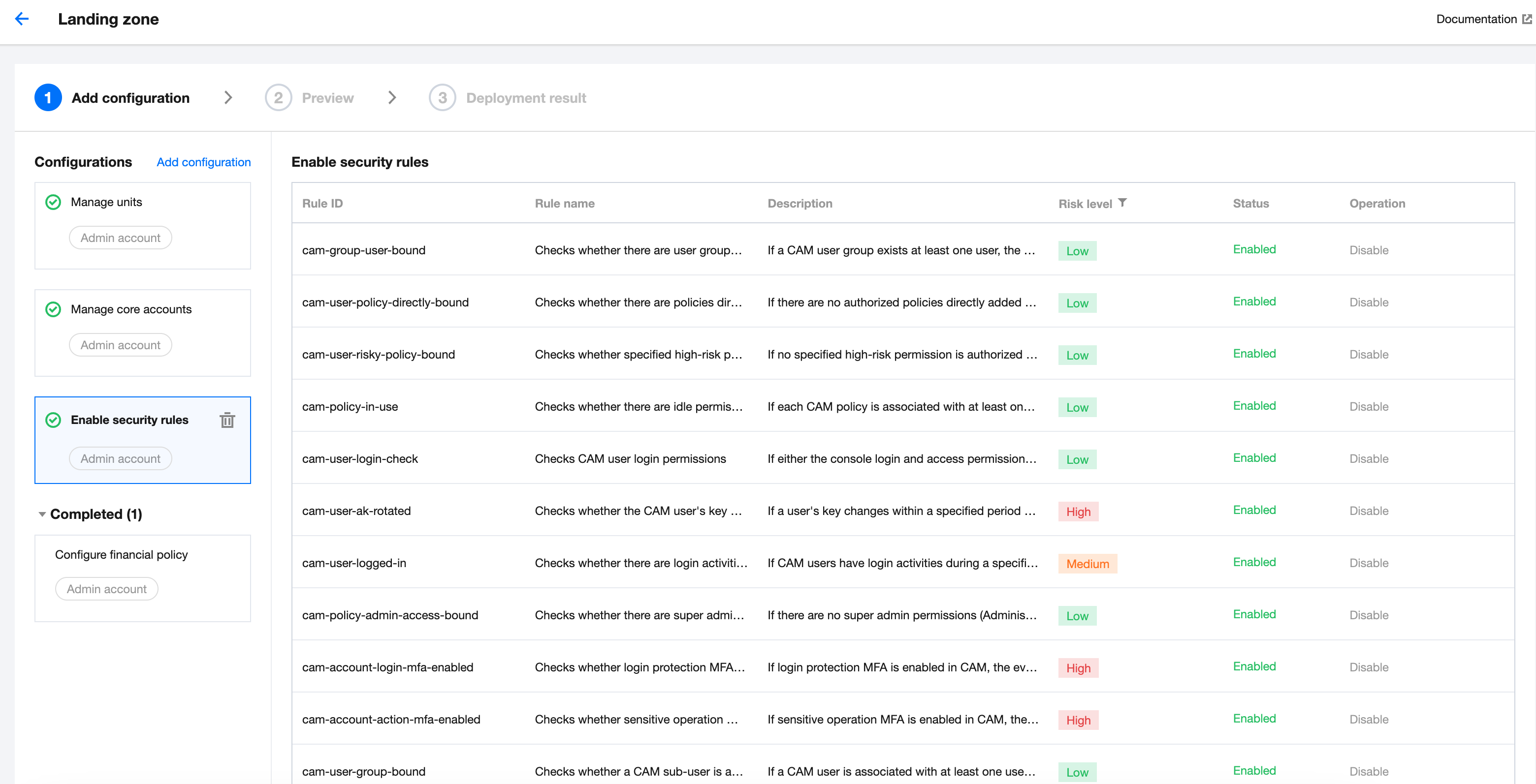 現在のアカウントはTencent Cloudコンソールにログインし、Control Center > Landing Zone 設定ページに移動しました。 操作手順