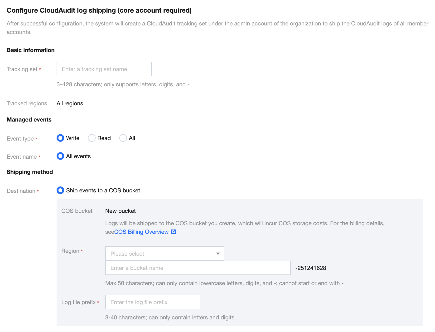 企業内のすべてのアカウントの操作ログを一括して指定された COS バケットに配信できます。これにより、ログの集中管理と分析を実現し、アカウント操作の監査を容易にします。このドキュメントでは、Landing Zone で CloudAudit ログの配信を設定する方法を紹介します。