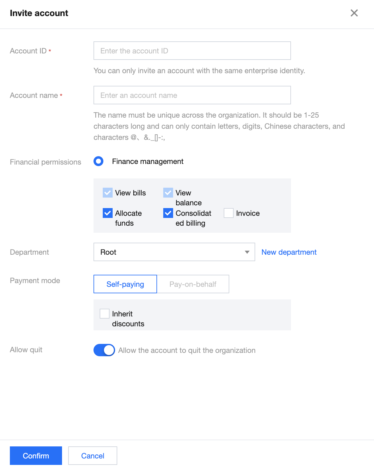 企業が既に持っているTencent Cloudアカウントを組織に参加させて統一管理することができます。Control Centerは、招待されたクラウドアカウントに確認メールを送信します。招待されたアカウントは確認後、参加できます。このドキュメントは、既存のアカウントを組織に招待する方法を紹介します。