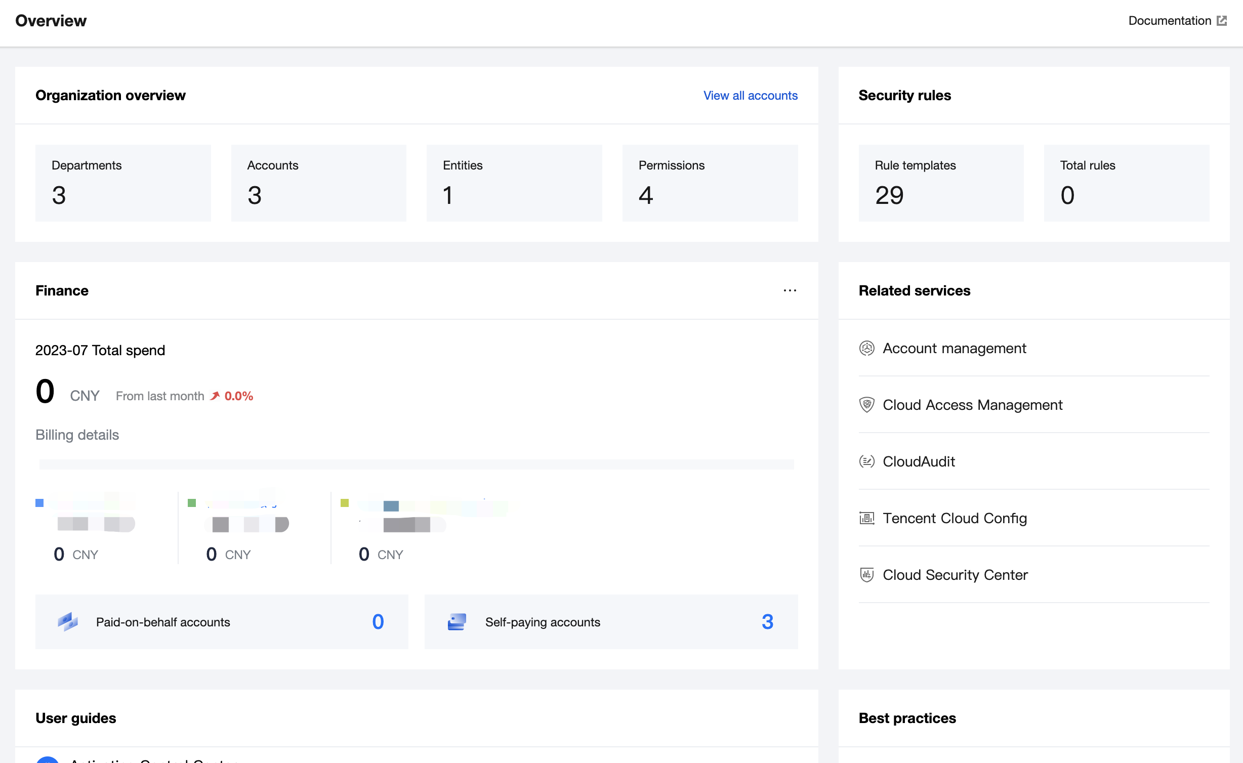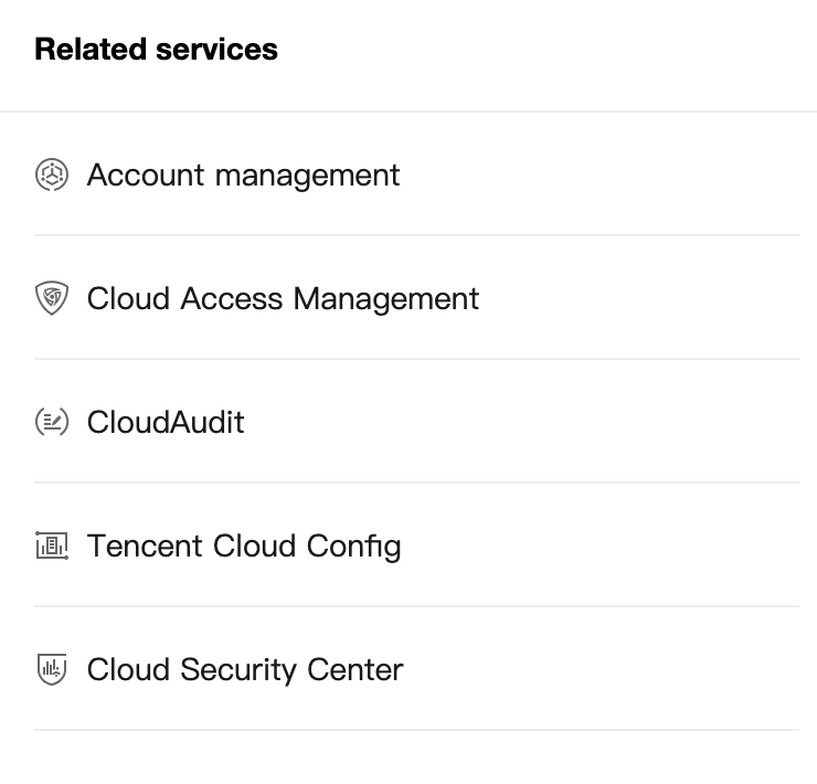 関連製品の推奨モジュールは、Control Centerに関連する他の製品(例えばCloud Organization、CAM、CloudAuditなど)を表示します。製品名をクリックすると、対応する製品ページに移動できます。