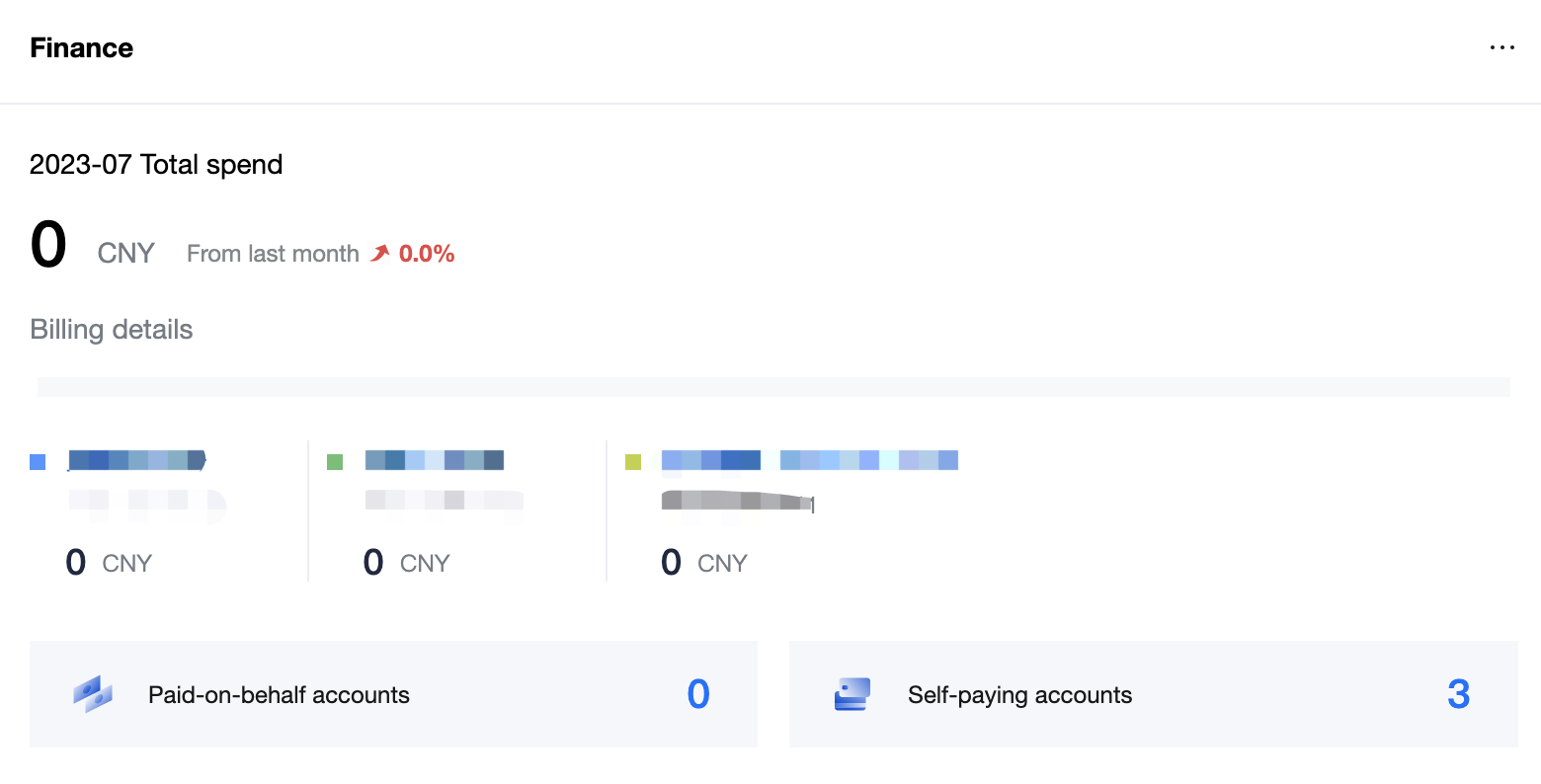 企業財務モジュールは、企業の当月の消費総額および当月の費用明細を表示します。アカウント名をクリックすると、メンバーアカウントの詳細に移動できます。また、当該企業の下にある代理支払いアカウントと自己負担アカウントの数も表示します。