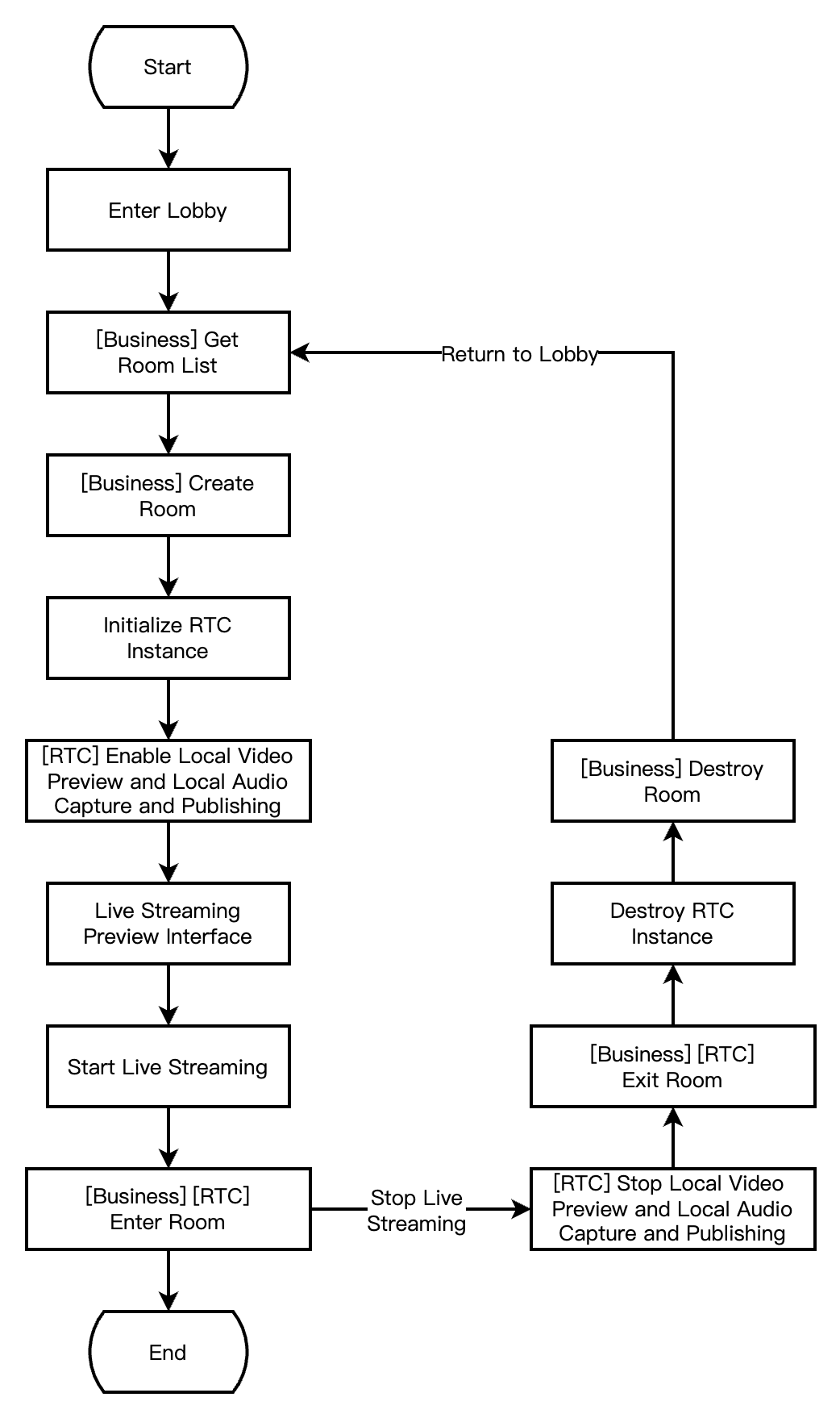 - (void)enterRoomByAnchorWithUserId:(NSString *)userId roomId:(NSString *)roomId {TRTCParams *params = [[TRTCParams alloc] init];// 文字列のルーム番号を例にparams.strRoomId = roomId;params.userId = userId;// 業務バックエンドから取得したUserSigparams.userSig = @"userSig";// 自分のSDKAppIDに置き換えるparams.sdkAppId = 0;// アンカーロール指定params.role = TRTCRoleAnchor;// インタラクティブライブシナリオで入室[self.trtcCloud enterRoom:params appScene:TRTCAppSceneLIVE];}// 入室結果イベントコールバック- (void)onEnterRoom:(NSInteger)result {if (result > 0) {// resultは入室にかかった時間(ミリ秒)NSLog(@"Enter room succeed!");} else {// result入室失敗のエラーコードNSLog(@"Enter room failed!");}}