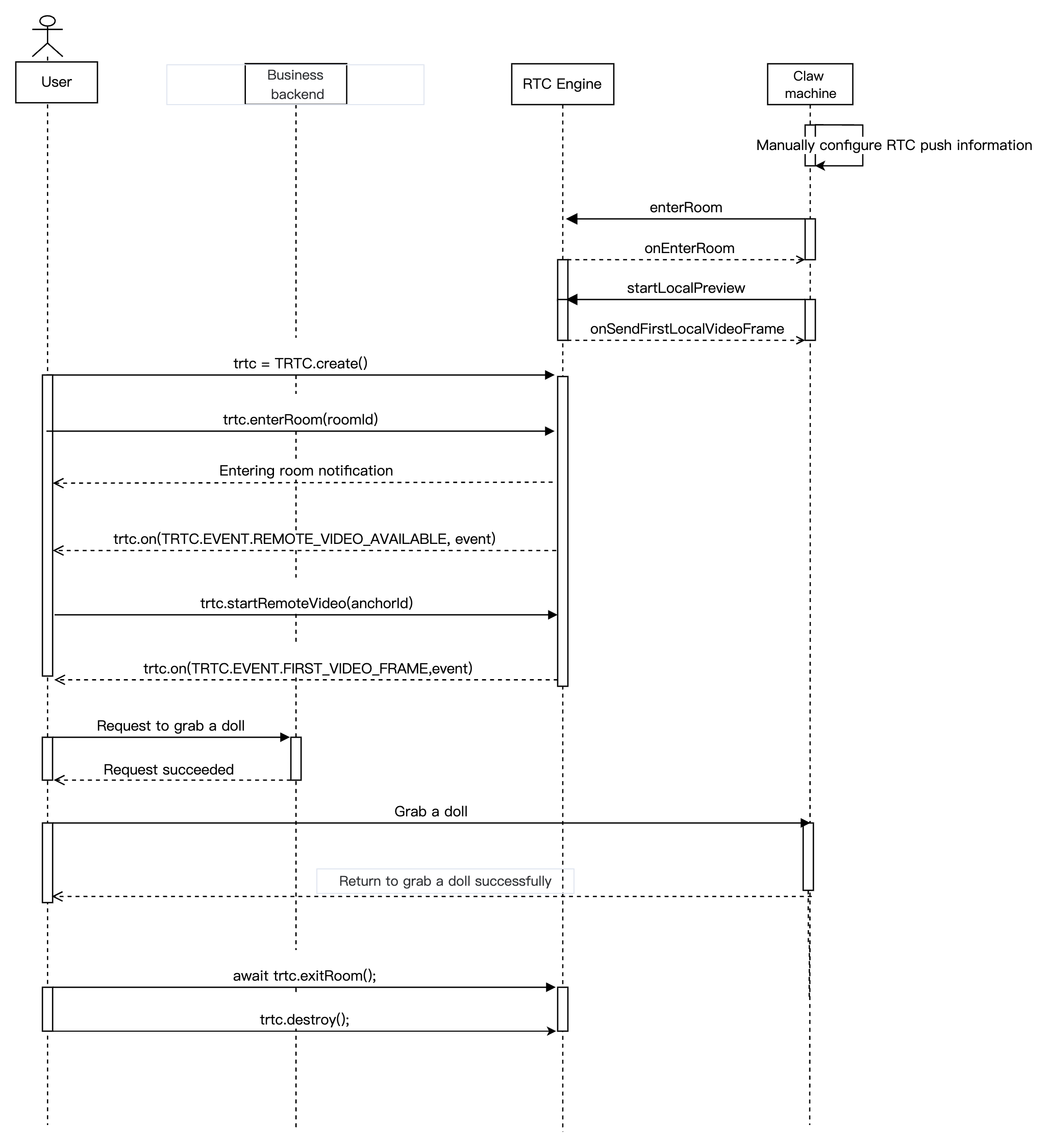 本節では、オンラインクレーンゲームにおける一般的な業務プロセスをまとめ、シーン全体の実現プロセスをよりよく理解できるようにします。