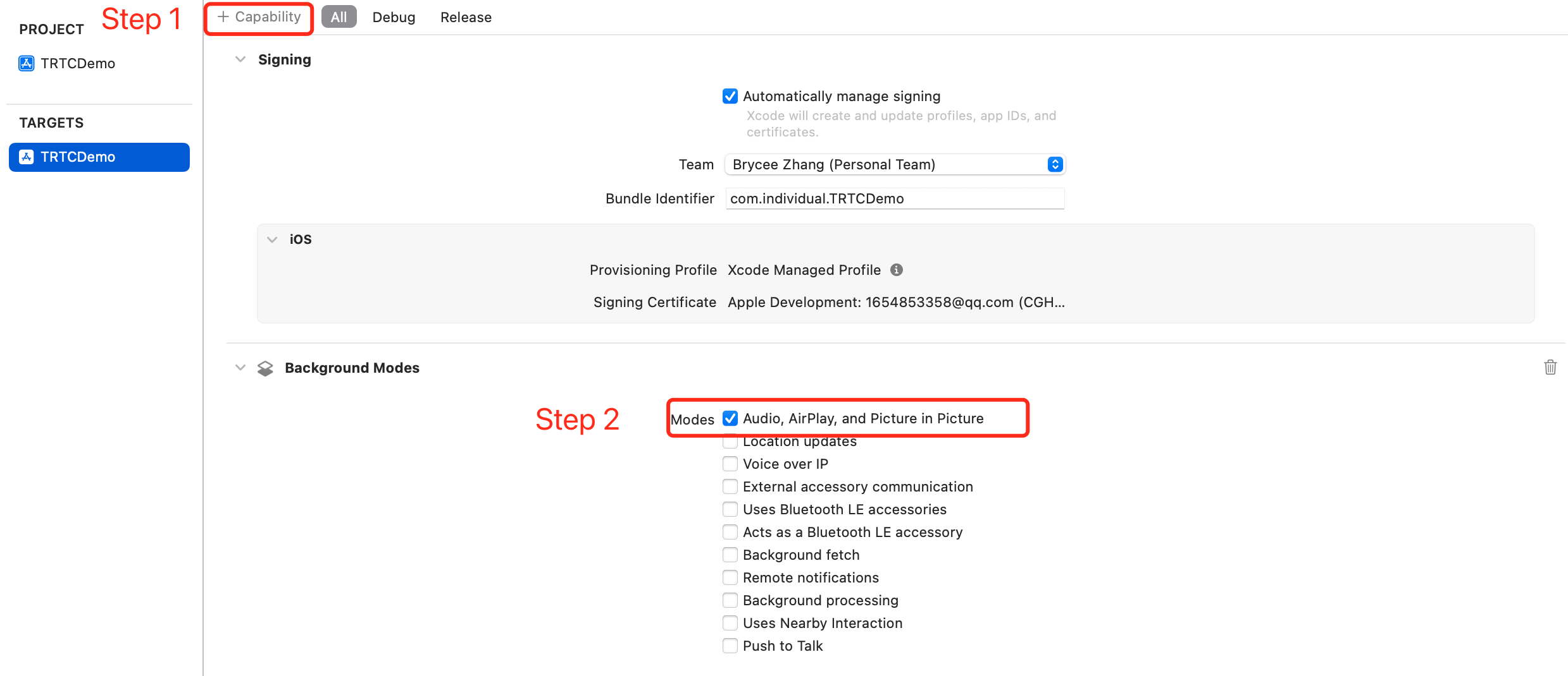 // RTC Engine SDKインスタンスを作成(シングルトンパターン)self.trtcCloud = [TRTCCloud sharedInstance];// イベントリスナーを設定self.trtcCloud.delegate = self;// SDKからの各種イベント通知(例:エラーコード、警告コード、オーディオ・ビデオの状態パラメータなど)- (void)onError:(TXLiteAVError)errCode errMsg:(nullable NSString *)errMsg extInfo:(nullable NSDictionary *)extInfo {NSLog(@"%d: %@", errCode, errMsg);}- (void)onWarning:(TXLiteAVWarning)warningCode warningMsg:(nullable NSString *)warningMsg extInfo:(nullable NSDictionary *)extInfo {NSLog(@"%d: %@", warningCode, warningMsg);}// イベントリスナーを削除self.trtcCloud.delegate = nil;// RTC Engine SDK インスタンスの破棄(シングルトンパターン)[TRTCCloud destroySharedIntance];