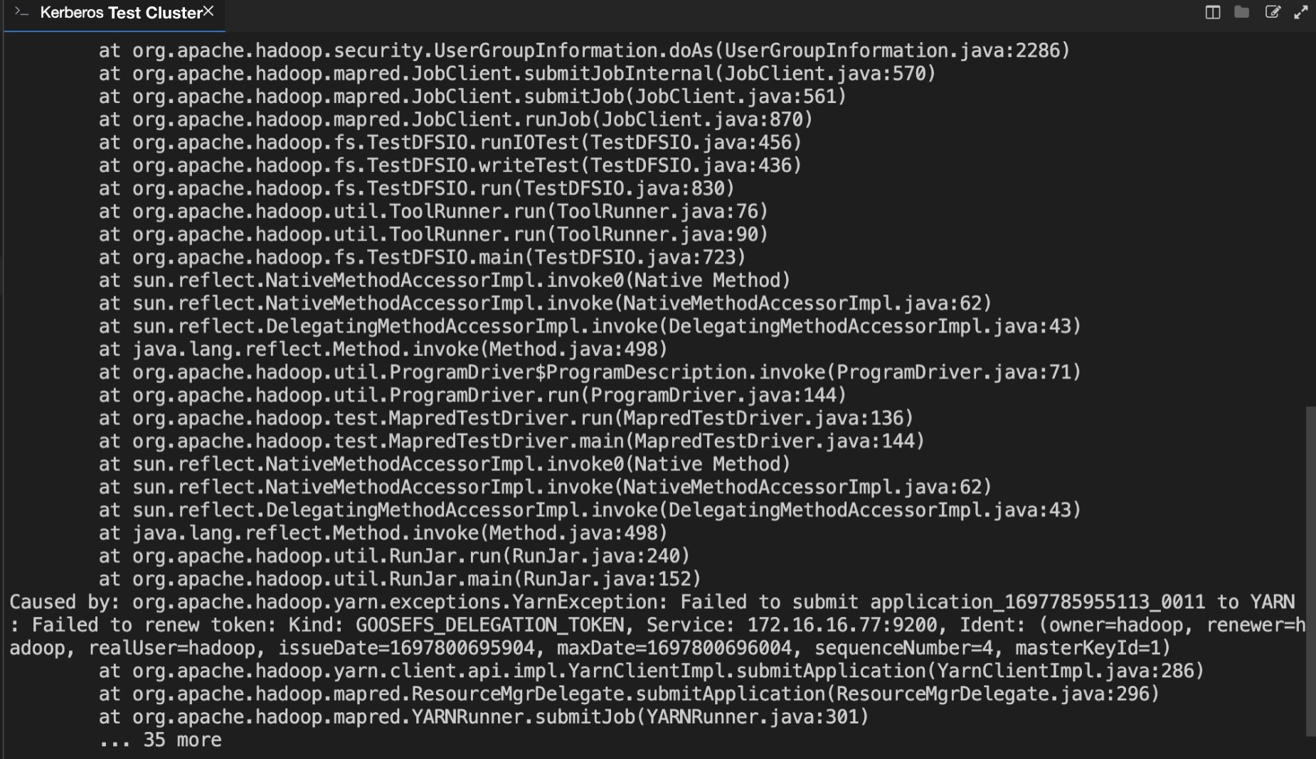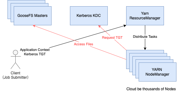 If a YARN cluster has hundreds or thousands of NodeManager nodes while multiple IO-intensive job tasks are running in parallel, the credential requests each execution node needs to send to the Kerberos KDC for normal access to files in GooseFS can result in a massive DDos attack.