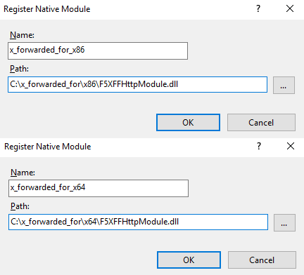 X-Forwarded-For 또는 remote_addr 필드를 사용하여 클라이언트 IP를 직접 가져올 수 있습니다. 레이어 7 CLB의 액세스 로그는 Configuring Access Logs를 참고하십시오.x86\\Release 또는 x64\\Release 디렉터리의 F5XForwardedFor.dll을 특정 디렉터리(예시: 본문의 C:\\ISAPIFilters)에 복사하고 IIS 프로세스에 이 디렉터리에 대한 읽기 권한이 있는지 확인합니다.F5XForwardedFor.dll의 전체 경로를 입력한 다음 확인을 클릭합니다.x86\\Release 또는 x64\\Release 디렉터리의 F5XFFHttpModule.dll 및 F5XFFHttpModule.ini를 특정 디렉터리(예시: 본문의 C:\\x_forwarded_for)에 복사하고 IIS 프로세스에 이 디렉터리에 대한 읽기 권한이 있는지 확인합니다.