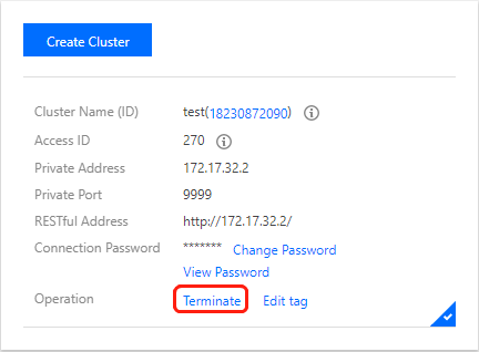 Um cluster não pode ser recuperado após encerrado, portanto, faça-o com cuidado.