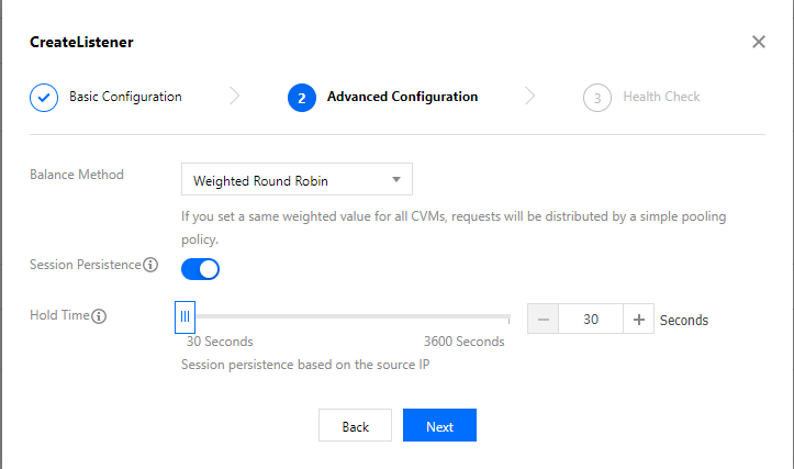 Persistência de sessão | Se deve ativar ou desativar a persistência de sessão. Depois que a persistência de sessão for ativada, o listener do CLB distribuirá as solicitações de acesso do mesmo cliente para o mesmo servidor de back-end. A persistência de sessão TCP é implementada com base no endereço IP do cliente. As solicitações de acesso do mesmo endereço IP são encaminhadas para o mesmo servidor de back-end. A persistência de sessão pode ser ativada para a programação de WRR, mas não para a programação de WLC. | Ativada |
