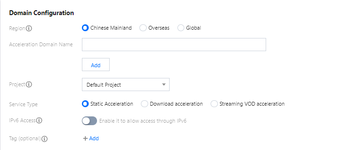 Tipo de aceleração | O CDN otimiza o desempenho de aceleração com base no tipo de serviço. Para obter o melhor resultado de aceleração, recomendamos escolher o tipo de aceleração semelhante ao da sua empresa real. CDN Aceleração estática: aplicável a cenários de aceleração de recursos de menor escala, como e-commerce, site e fotos de jogos. Aceleração de download: aplicável a cenários de download, como pacotes de instalação de jogos, downloads de arquivos de origem de áudio e vídeo e distribuição de firmware de celular. Aceleração de streaming de vídeo sob demanda: aplicável à educação online e streaming de vídeo sob demanda. ECDN Aceleração dinâmica/estática: aplicável a cenários de negócios em que dados estáticos e dinâmicos são integrados, como várias páginas iniciais de sites. Aceleração dinâmica: aplicável a cenários como login em conta, transação de pedido, chamada de API e consulta em tempo real . Observação: Os padrões de faturamento variam de acordo com o tipo de aceleração. Para obter mais informações, consulte Visão geral de faturamento da CDN e Visão geral de faturamento da ECDN, respectivamente. |