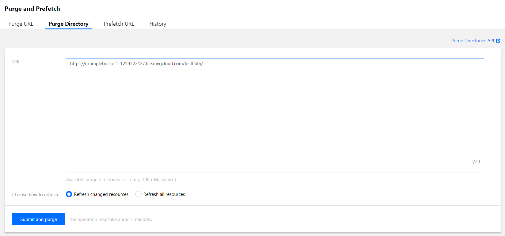 Além disso, o CDN pode limpar o cache de URLs ou diretórios especificados em lotes: