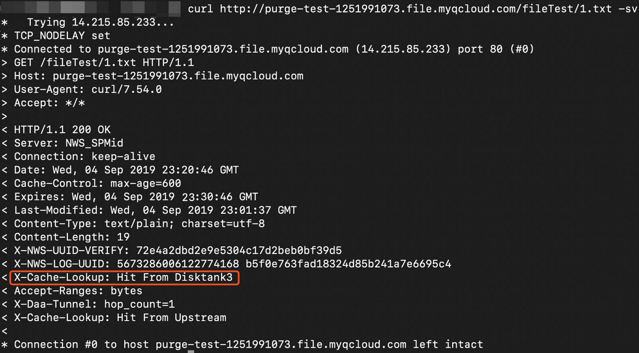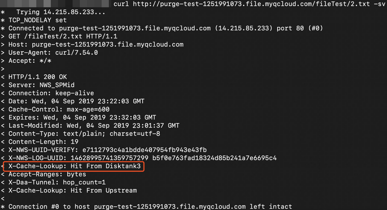 1. Inicie solicitações para acessar os recursos 1.txt e 2.txt respectivamente. Os nós a serem atingidos podem ser determinados com base em X-Cache-Lookup: Hit From Disktank3 e Server: NWS_SPMid, os recursos serão retornados diretamente pelos nós:
