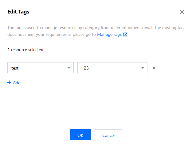 2. Selecione tags para categorizar e gerenciar servidores de origem em várias dimensões. Clique em OK.