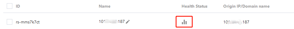 1. Faça login no Console do GAAP. Na página Origin Server Management (Gerenciamento de servidores de origem), clique no ícone à direita do servidor de origem que está íntegro. Atenção: