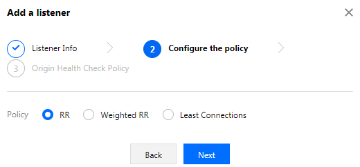 3. Configure a política de processamento do servidor de origem; ou seja, quando um listener estiver vinculado a vários servidores de origem, será necessário selecionar uma política de programação para eles, conforme mostrado abaixo: