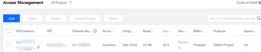 1. Selecione um listener e clique em Bind Origin Server (Vincular servidor de origem) na coluna Operation (Operação).