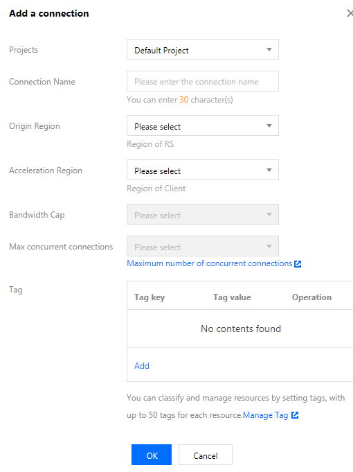 2. Na janela Add a connection (Adicionar uma conexão), insira as informações da conexão de aceleração.