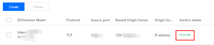 Após concluir as etapas acima, você pode usar a conexão para aceleração quando o status do listener se tornar Normal.