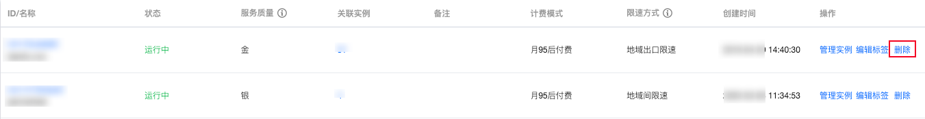 在云联网列表中,找到需要删除的云联网实例所在行,单击操作栏中的