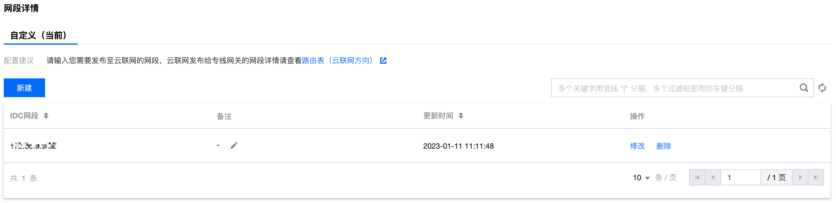 在网段详情页面的网段列表中可查看发布的 IDC 网段信息。