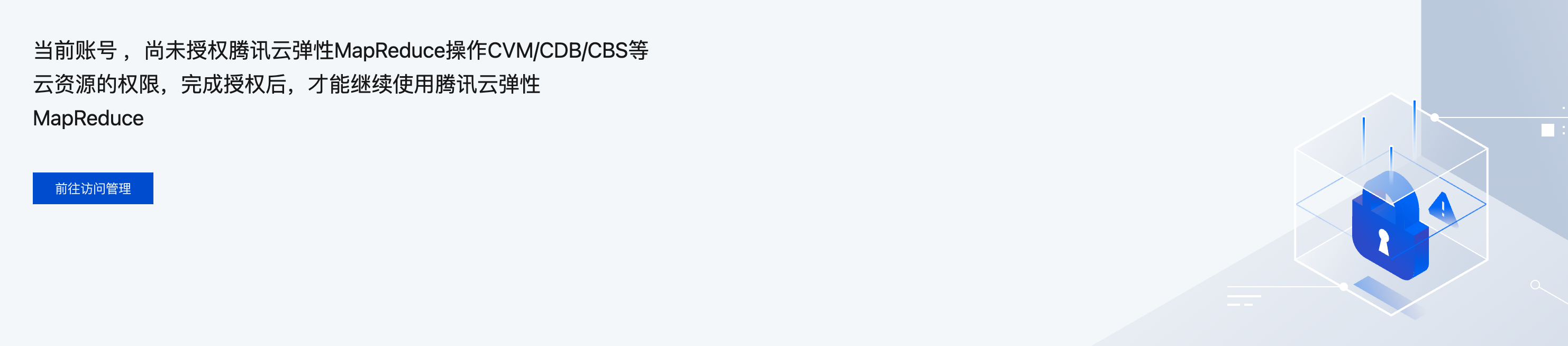 1. 当用户创建集群或创建按需执行计划时,若为 EMR 服务授予 EMR_QCSRole 角色失败,会有如下提示。可单击前往访问管理,进行角色授权。