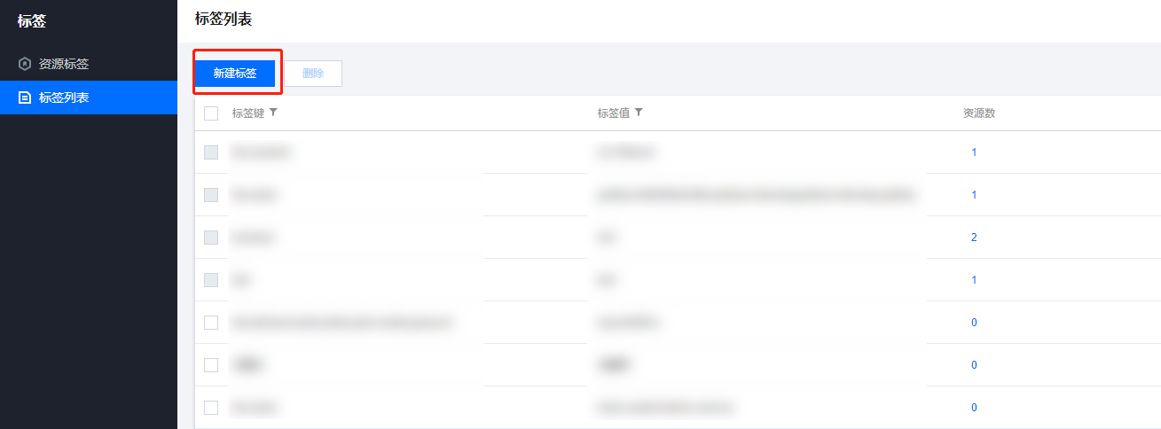 输入标签键(App)和标签值(Dev),单击确定即可创建成功。