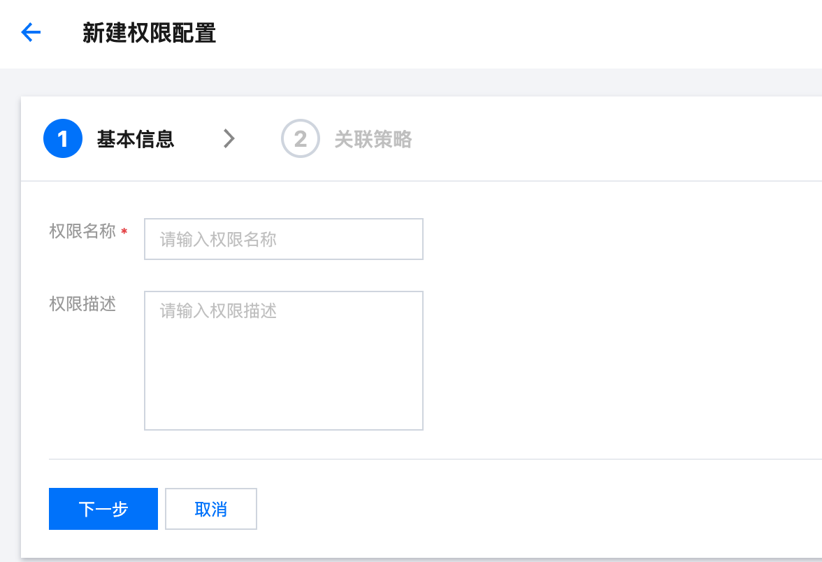 4. 在新建权限配置面板,配置以下基本信息,然后单击下一步。
