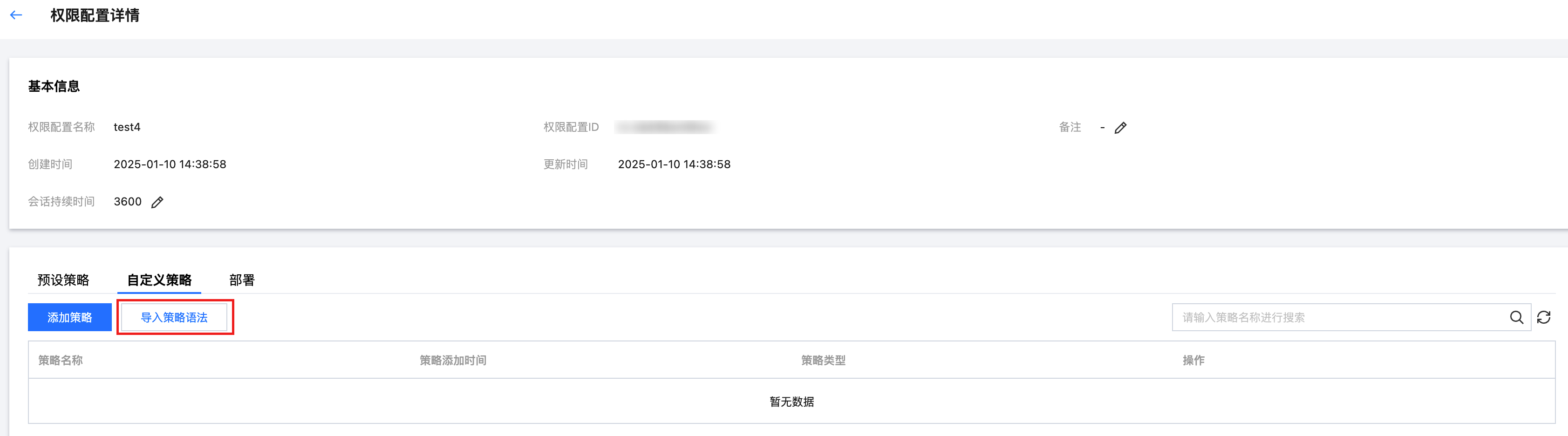 1. 通过导入已有策略添加自定义策略,单击导入策略语法。