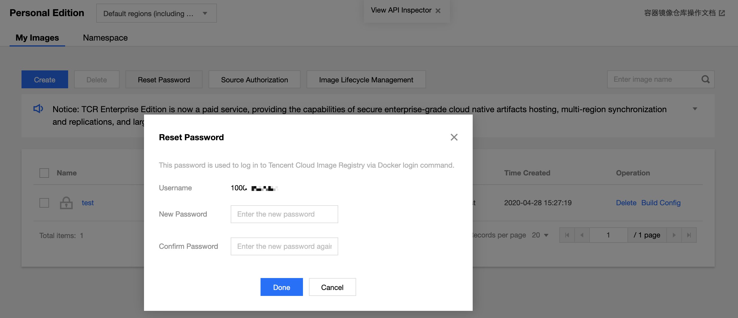 3. 为您的个人容器镜像仓库设置密码,该密码之后可以用于通过 docker login 来登录您的容器镜像仓库。