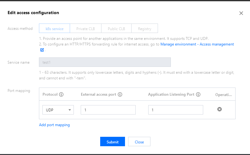 请在应用详情 > 基本信息 > 访问配置页面中,检查应用配置的访问配置的端口和协议是否正确。