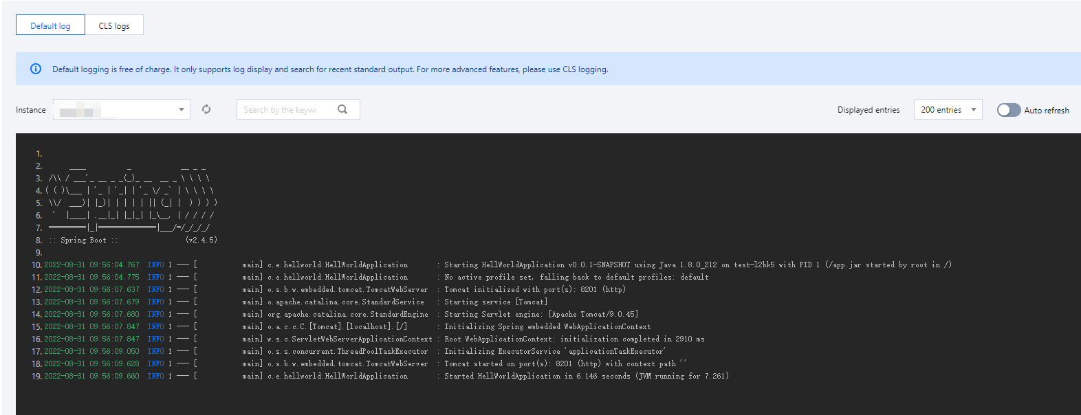 查看实例的日志,通过日志内容排查问题。