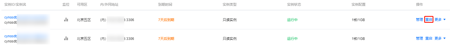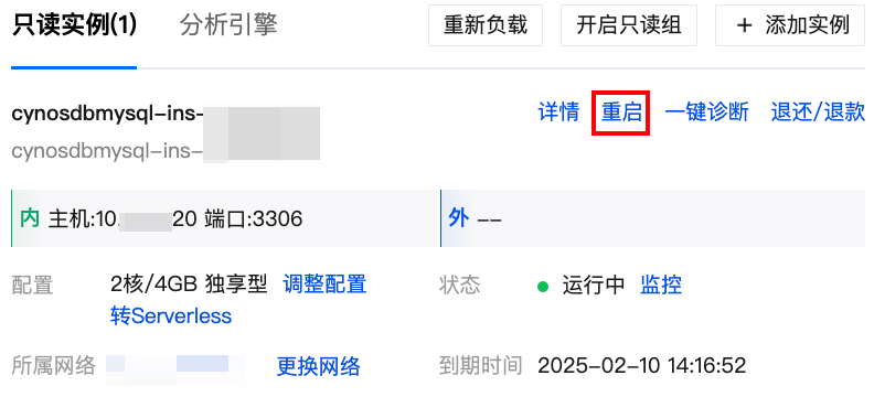 当需要对实例进行例行维护,清理数据库的 buffer,或出现性能问题时,可以手动重启实例。