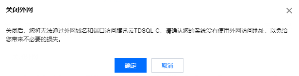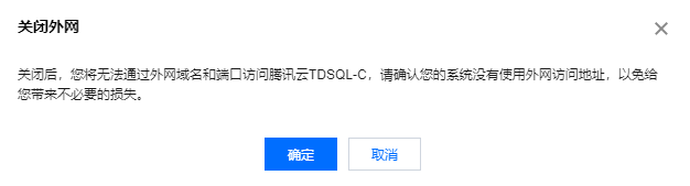 关闭外网地址后,您将无法通过外网域名和端口访问 TDSQL-C MySQL 集群,请确认您的系统没有使用外网访问地址,以免给您带来不必要的损失。